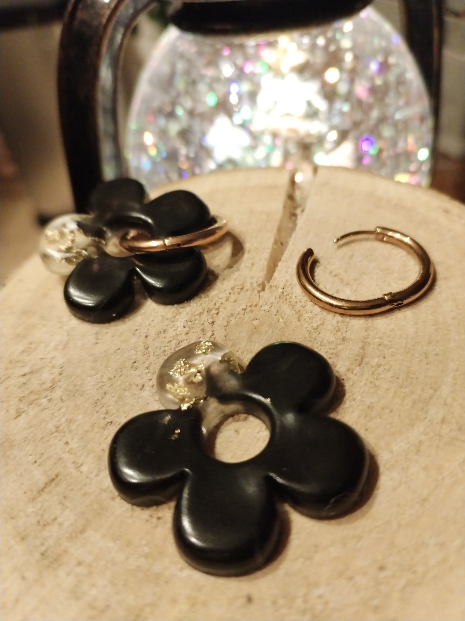 Pampille noire et feuilles dorées